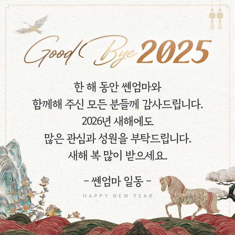 안녕하세요, 쎈엄마입니다. 2025년 한 해 동안 쎈엄마와 함께해 주신 모든 분들께 감사의 마음을 전합니다. 2026년에도 더욱더 풍성하고 유익한 강연으로 찾아뵙겠습니다. 앞으로도 많은 관심과 사랑 부탁드리며, 모두 새해 복 많이 받으세요.