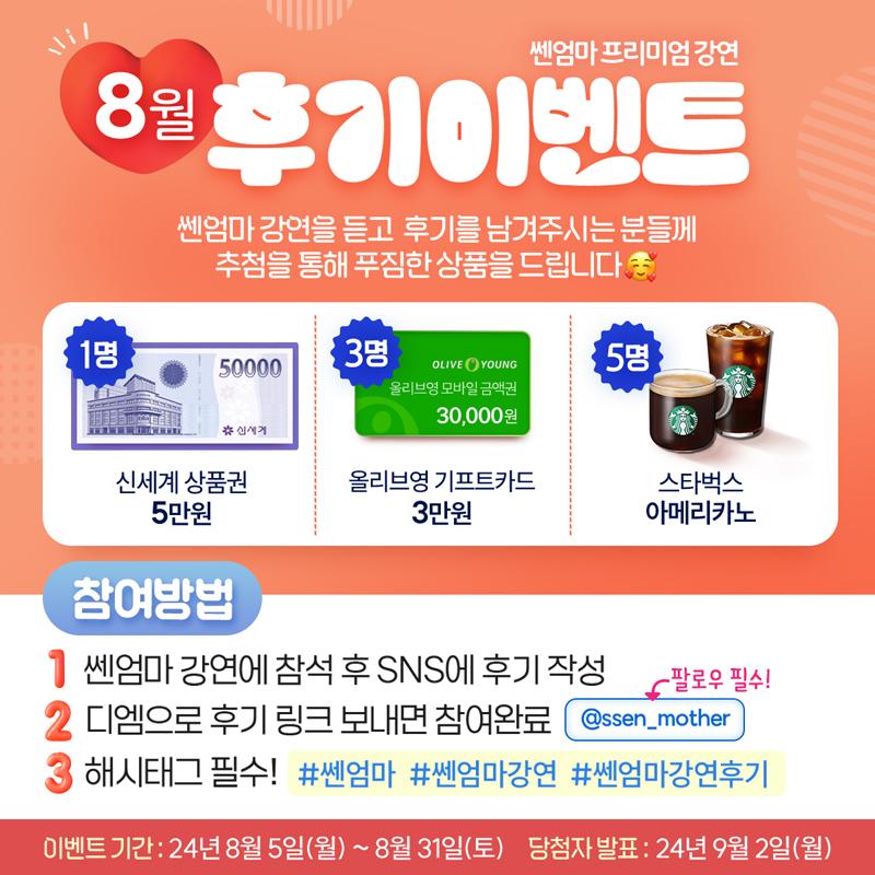 ♥8월 쎈엄마 강연도 듣고 푸짐한 선물도 받자!♥