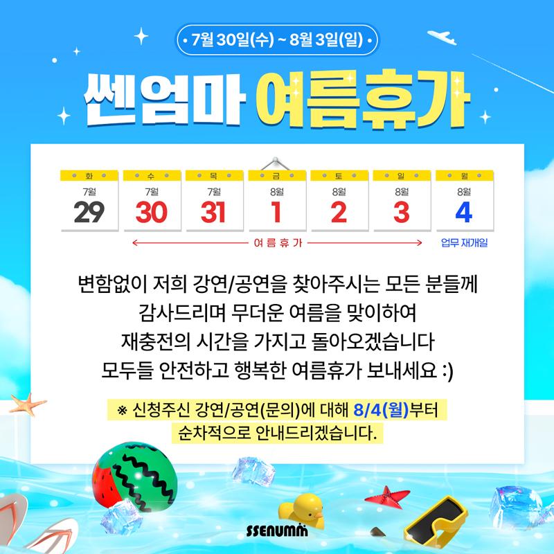 쎈엄마 여름휴가 안내