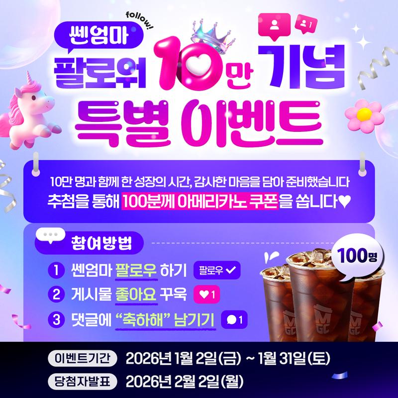 쎈엄마 계정을 팔로우하고 댓글에 “축하해” 세 글자를 남겨주세요