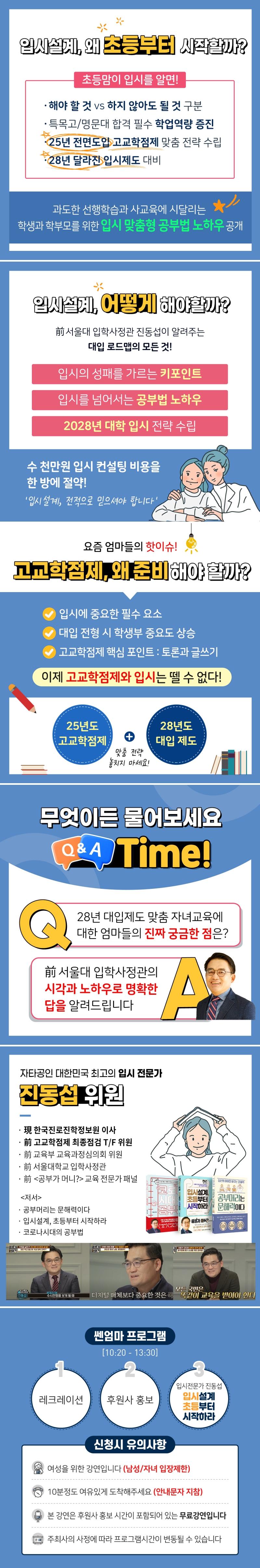 + 본 강연은 후원사 홍보시간이 포함되어 있는 무료 강연입니다. + 25세 이상 여성분들만 신청 가능 (자녀와 남편은 다음에~) + 입장 마감시간은 10시 40분입니다. + 선착순으로 입장하며 자유석입니다. |