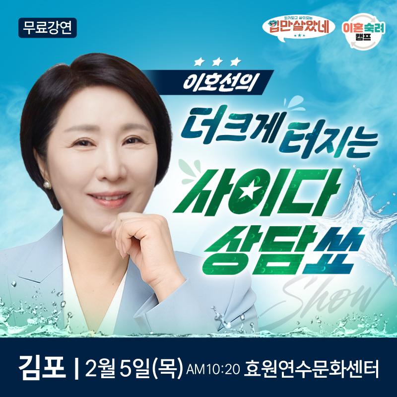 [성함 / 김포 이호선] 을 010-5647-4921 로 문자 발송 ex) 홍길동 / 김포 이호선 ※ 신청 후 , 평일 기준 1~3일 이내 안내문자 보내드릴게요 :) ★ 강연 필독 유의사항 ★ + 본 강연은 보람상조 또는 HD투어존 상품 홍보 시간이 포함되어 있습니다. + 25세 이상 여성분들만 신청 가능 (자녀와 남편은 다음에~) + 입장 마감시간은 10시 40분입니다. + 선착순으로 입장하며 자유석입니다. |